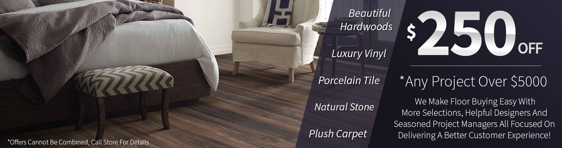 We are a family owned business proudly serving Denton and all of North Texas for over 30 years. Our Mission is to "Wow" our customers’ everyday by providing a comfortable and relaxing floor and stone countertop buying experience making it easier to find the perfect selections to fit your style and budget. We carry the highest quality brands with 1000s of flooring samples in all colors, types and designs in our showroom ready for you to see, feel and touch. And, if you are unable to visit our store one of our "project managers" will gladly bring our showroom of samples to you so you can comfortably ‘shop at home’. We are also a proud winner of the Angie's List Super Service Award identifying us in the top 10% of contractors that continue to satisfy our customers' expectations. And, we are members of the "Good Contractors" list giving customers added peace of mind that their flooring project is guaranteed. From shopping to purchasing to a professional installation, we will work with you focusing on all the details and committed to exceeding your expectations.