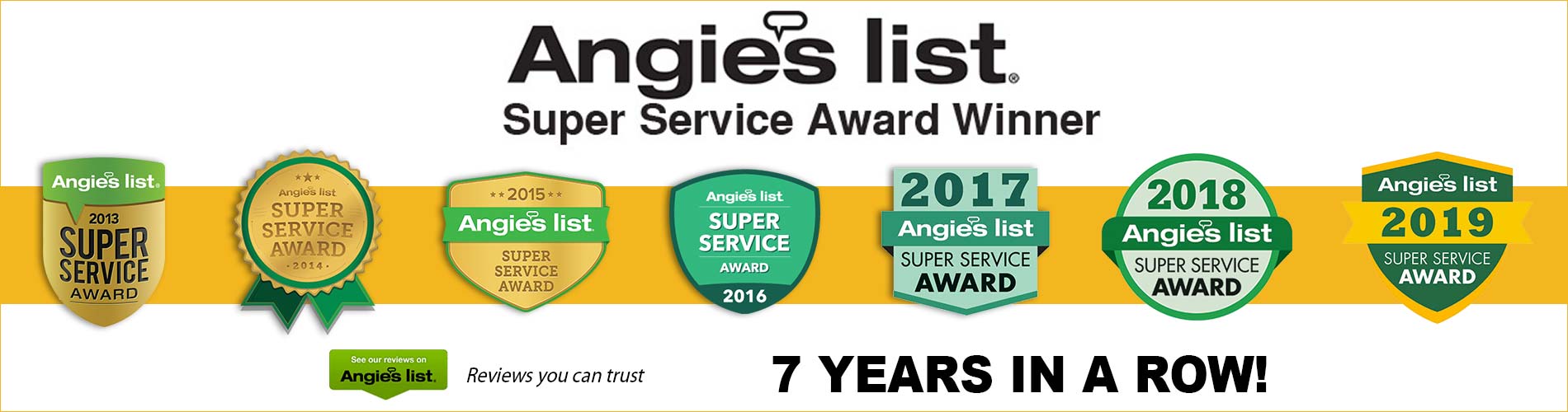 Winner 2013, 2014, 2015, 2016, 2017, 2018 and 2019 Angie's List Super Service Award Hand picked member of The Good Contractors List